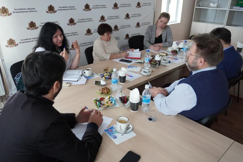 9 апреля в Доме дружбы народов Владимирской области состоялось заседание рабочей группы по подготовке Вечера духовных песнопений. Владимирскую епархию Русской Православной Церкви представляла руководитель отдела культуры паломничества и религиозного туризма Т.Савельева. В заседании также приняли участие: настоятель Прихода Святого Розария Пресвятой Девы Марии Римско-католической Церкви в городе Владимире о. Сергий (Зуев), настоятель храма Армянской апостольской церкви «Сурб Григор Лусаворич» г. Владимира Ново-Нахичеванской и Российской епархии Армянской Апостольской Церкви иерей Абгар, пастор местной религиозной организации христиан веры евангельской «Владимирская церковь «Свет миру» А.Чернов.