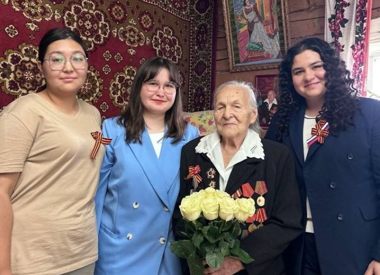 От лица всей многонациональной молодёжи Диляра Дамар поздравила Амину Гаязовну с 80-летием Победы, подарила цветы и памятные подарки, поблагодарив за героизм и мужество, проявленные в тяжёлые годы Великой Отечественной войны.