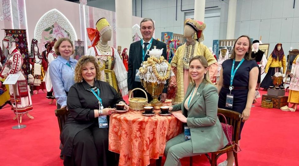 В МВЦ Казань гостям международного форума представили экспозицию 44 х воссозданных костюмных комплекса русских, татар, башкир, марийцев, мордвы, удмуртов и чувашей, проживавших на территории Казанского Поволжья в период второй половины XIX – начала XX в., а также музыкальные народные инструменты и разнообразные предметы быта, которые более шире дают представление о быте и занятиях наших предков.