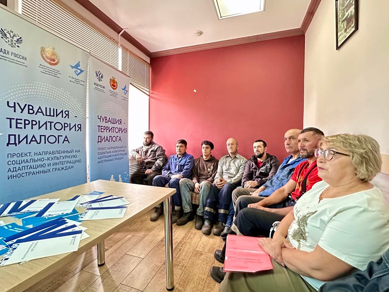 В Чувашской Республике продолжается работа по социально-культурной адаптации иностранных граждан в регионе. Сотрудниками АУ «Дом дружбы народов Чувашии» Минкультуры Чувашии при содействии Минкультуры Чувашии проведено лекционное занятие курса ФАДН России по адаптации иностранных граждан. Курс направлен на повышение их правовой грамотности и снижение напряжённости в миграционной среде.