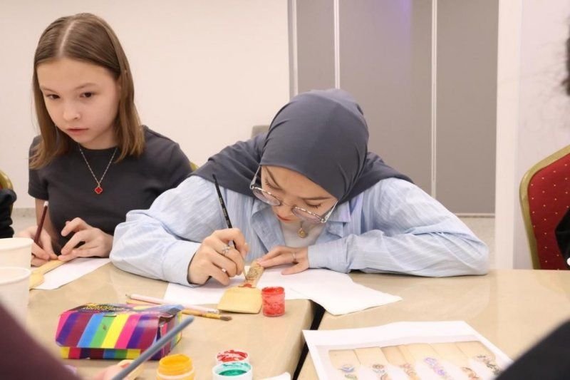 В мастер-классе приняли участие ученики школы №80 г. Казани, которые научились наносить татарский национальный орнамент на деревянный лопатки.