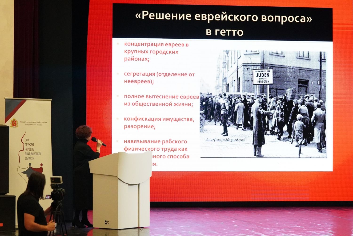 Мероприятия провела президент Общественной организации «Региональная еврейская национально-культурная автономия Владимирской области» Элеонора Савельева. В своём выступлении особое внимание она уделила рассказу о «Праведниках мира» — людях, которые, рискуя собственной жизнью, спасали евреев в годы фашистской оккупации. Также учащиеся посмотрели фильм о жителе города Владимира, бывшем узнике рижского гетто Иосифе Лейбовиче Длинсе, который и сегодня, несмотря на преклонный возраст, продолжает участвовать во встречах с юными владимирцами, доносит правду о страшной войне и Великой Победе.
