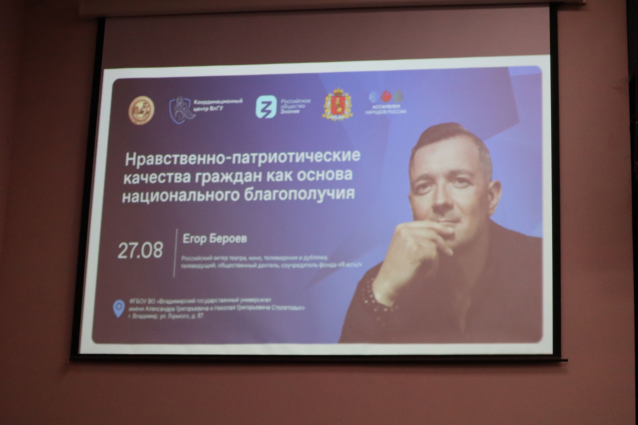 Спикером встречи стал российский актёр театра, кино, телевидения и дубляжа, телеведущий, общественный деятель, а также соучредитель фонда «Я есть!» Егор Бероев. В ходе беседы участники обсудили личностную мотивацию и успех, патриотизм в современных реалиях, а также специальную военную операцию. Спикер поделился историей своего пути в жизни и профессии, личным взглядом на обозначенные темы и ответил на многочисленные вопросы слушателей.