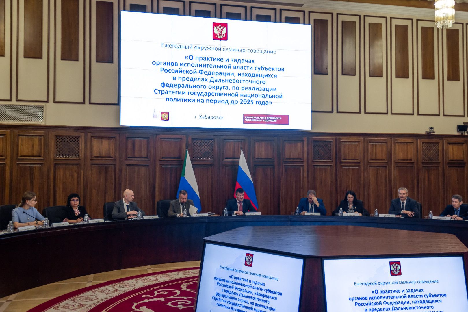 19 июня 2024 года в г. Хабаровске состоялся окружной семинар-совещание «Об итогах работы в 2024 году и задачах органов исполнительной власти субъектов Российской Федерации по реализации Стратегии государственной национальной политики Российской Федерации на период до 2025 года».