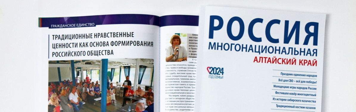 Домом народов Алтайского края подготовлен очередной номер журнала «Россия многонациональная. Алтайский край» за 2024 год. Ежегодный иллюстрированный журнал освещает вопросы реализации государственной национальной политики в Алтайском крае, различные аспекты этнокультурной жизни региона, а также содержит материалы по истории, этнографии и культуре народов, населяющих Алтайский край.