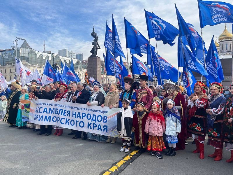 Торжество началось с исполнения Гимна России сводным хором, состоящим из представителей разных народов, проживающих в Приморье, и поднятием российского флага.