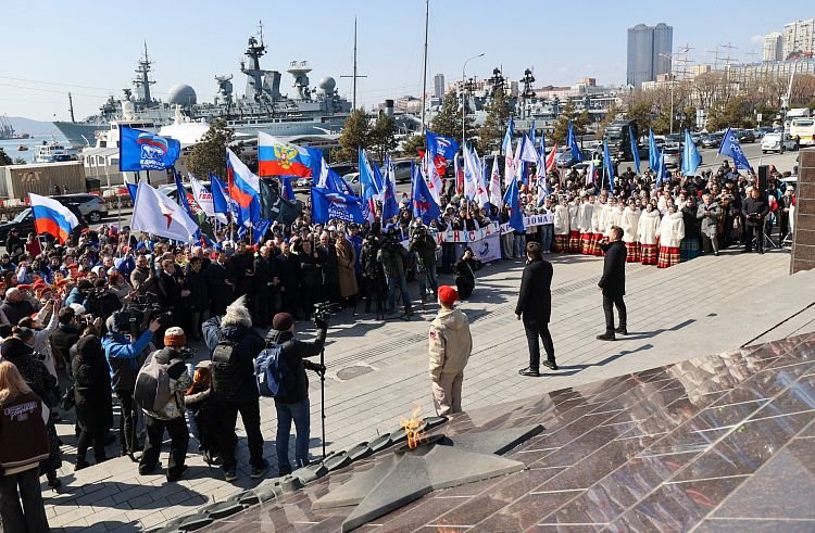 Митинг-концерт в честь 11-летия воссоединения Республики Крым с Россией прошёл в столице Дальнего Востока. В мероприятии во вторник, 18 марта, принял участие Губернатор Приморского края Олег Кожемяко.