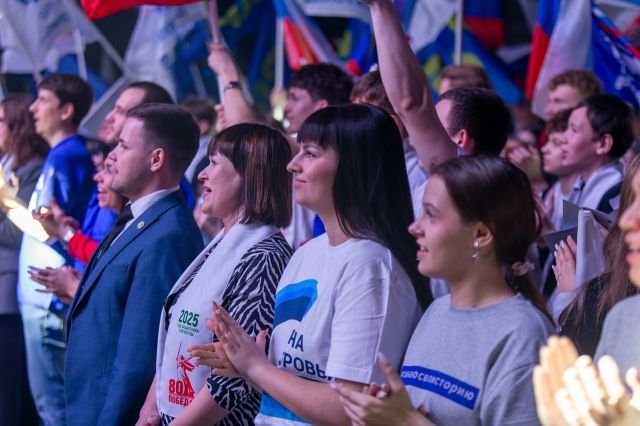 Представители 34-х средне-специальных образовательных учреждений, принимавших участие в межрегиональной добровольческой акции «МЫ – Вместе!», заняли почётное место перед сценой.